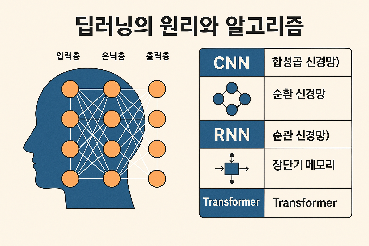 딥러닝은 인공지능 기술의 핵심으로, 이미지 인식부터 자연어 처리, 음성 인식까지 다양한 분야에서 혁신을 일으키고 있습니다. 본 글에서는 딥러닝의 작동 원리를 기초부터 설명하고, CNN, RNN, Transformer 등 대표적인 딥러닝 알고리즘을 예시와 함께 정리합니다. 기술적 배경이 없어도 이해할 수 있도록 구성했으니, 딥러닝에 대해 체계적으로 알고 싶은 분들에게 적합한 안내서가 될 것입니다.