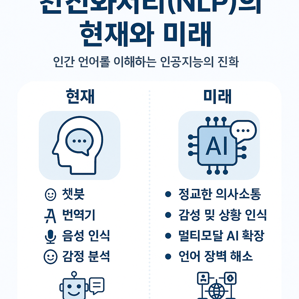자연어처리는 인공지능이 인간 언어를 이해하고 해석하는 핵심 기술입니다. 현재 챗봇, 번역기, 음성 인식 등 다양한 분야에서 이미 활용되고 있으며, 향후에는 보다 정밀한 의사소통과 감성 인식까지 확장될 것으로 기대됩니다. 이 글에서는 자연어처리 기술의 현재 활용 사례와 함께 미래 발전 방향을 알기 쉽게 정리합니다.